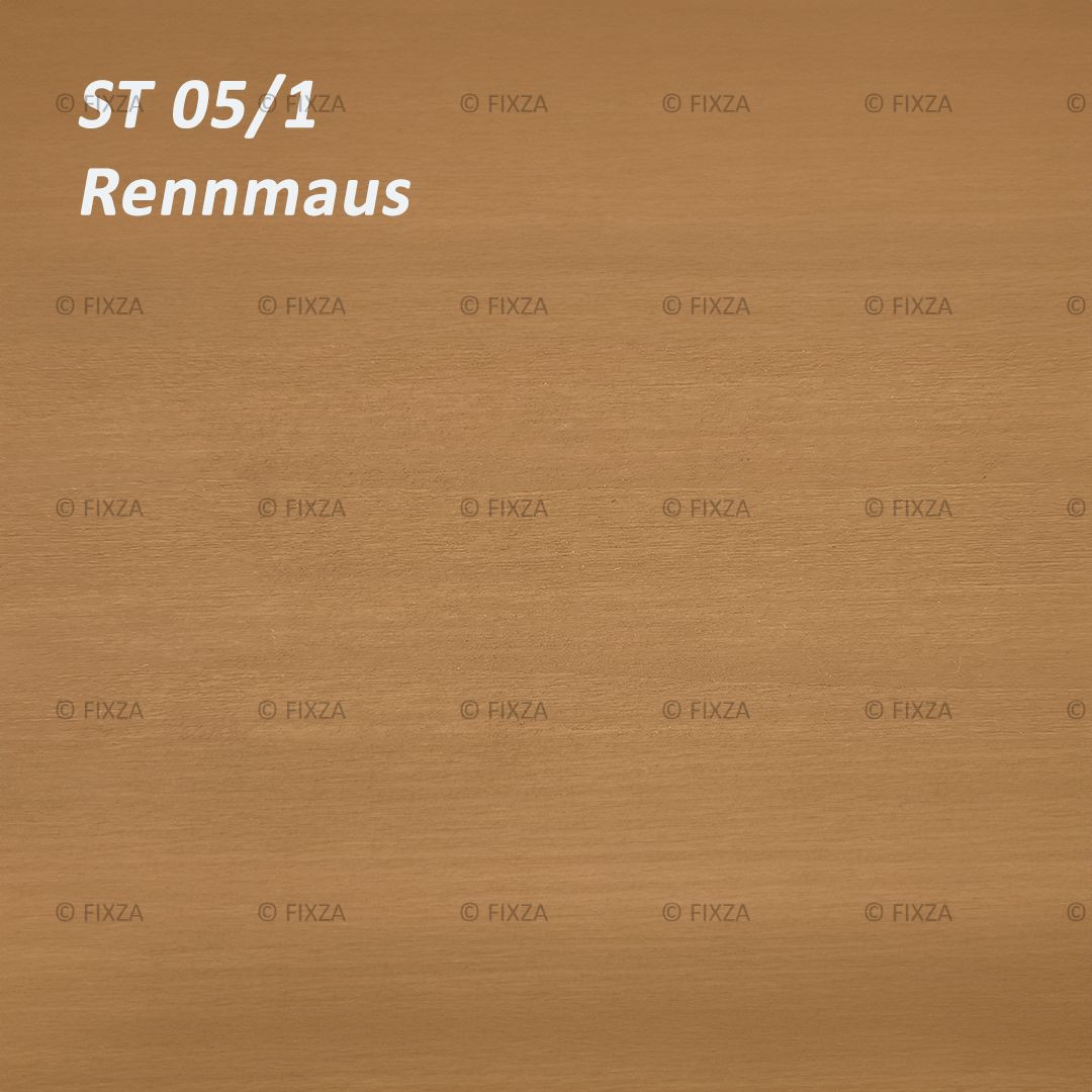 De beits kleur Rennmaus is een eerbetoon aan de zachte, warme tonen van de woestijnmuis (gerbil). Deze subtiele beige-bruintint weerspiegelt de ingetogen elegantie van natuurlijke vachtkleuren, waardoor je houtwerk op een verfijnde manier opgaat in zijn omgeving. De nerftekening van het hout blijft prachtig zichtbaar en wordt versterkt door de matte afwerking van deze beits lazuur.