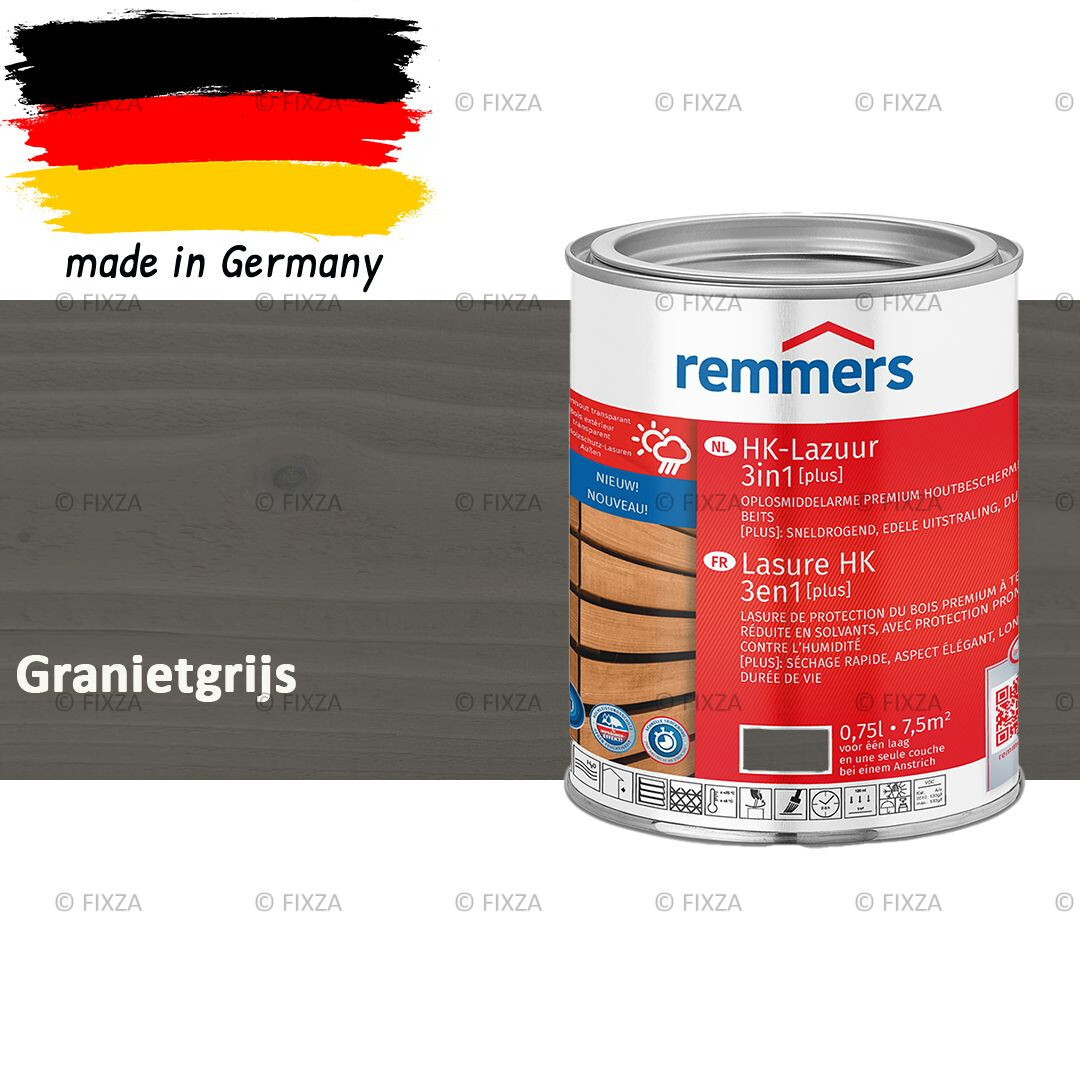 | Duitse benaming | Remmers HK-Lasur 3in1 [plus] Schnell trocknende, lösemittelreduzierte Premium-Holzschutz-Lasur mit ausgeprägtem Feuchteschutz für Holz im Freien |
