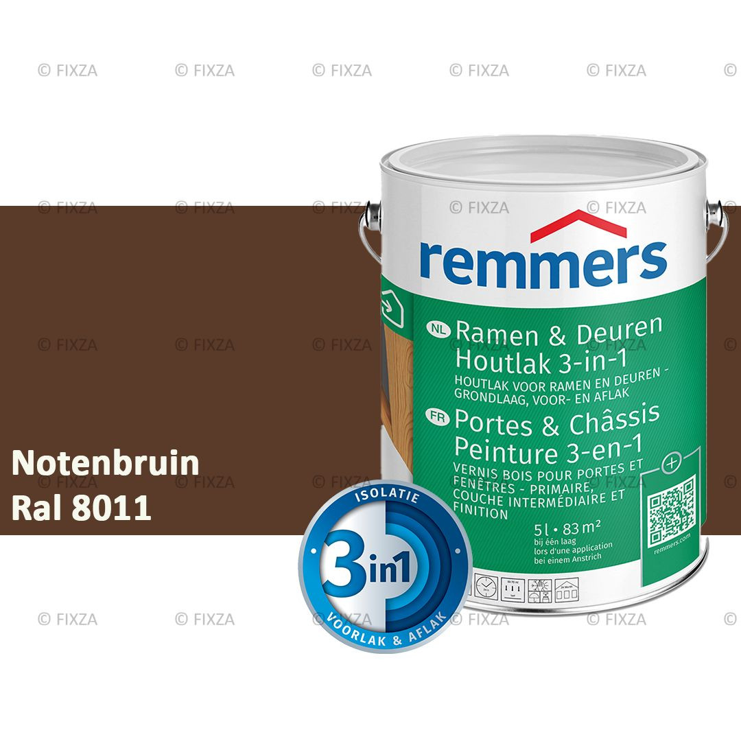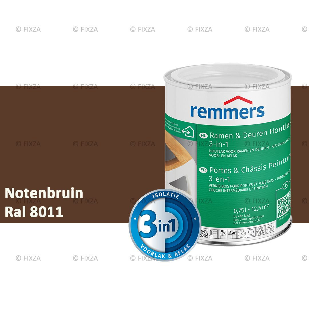 Remmers Ramen & Deuren Houtlak 3in1 RAL 8011 Notenbruin – Hoogwaardige dekkende alkydharslak met alles-in-één functie in de kleur notenbruin voor houten kozijnen en deuren buiten.