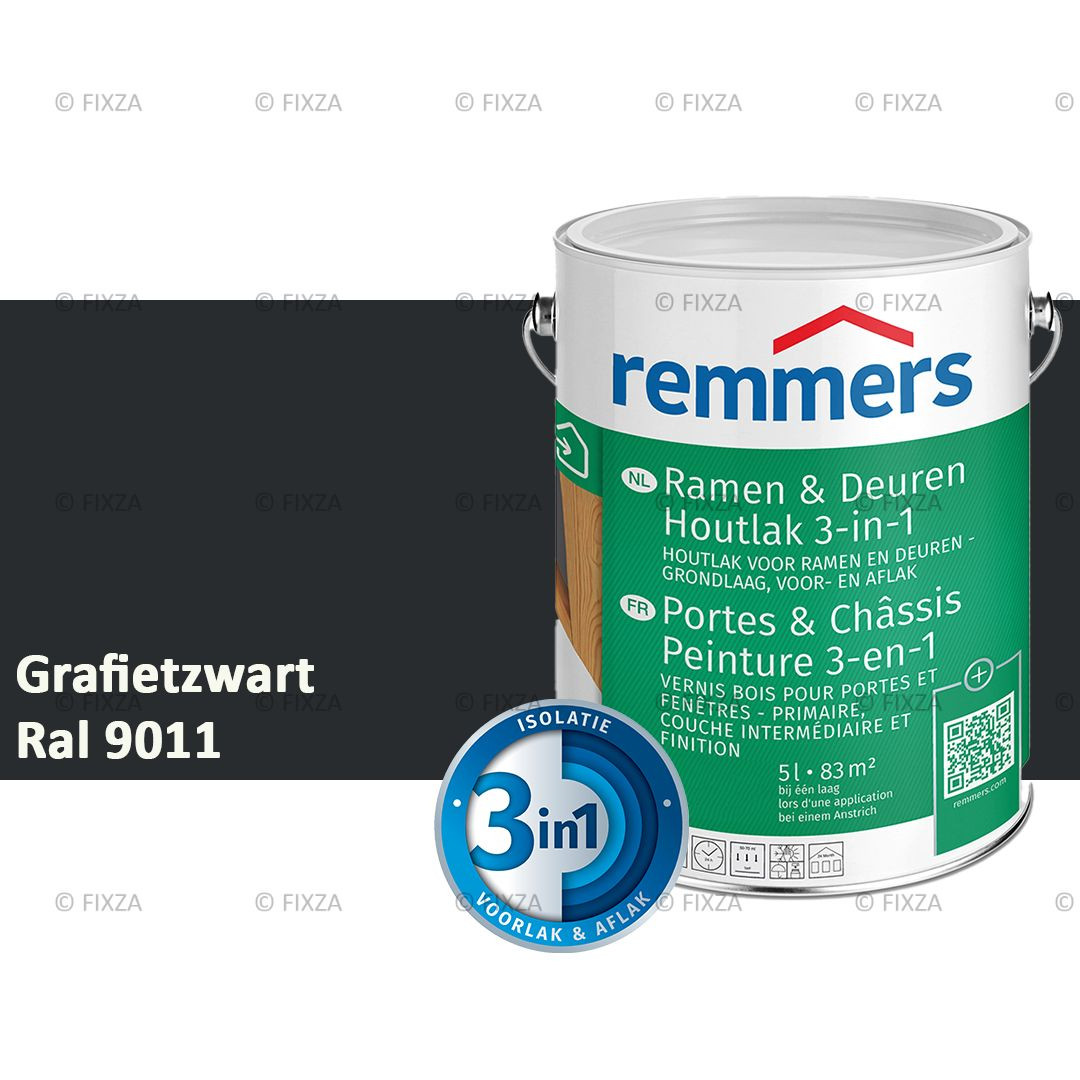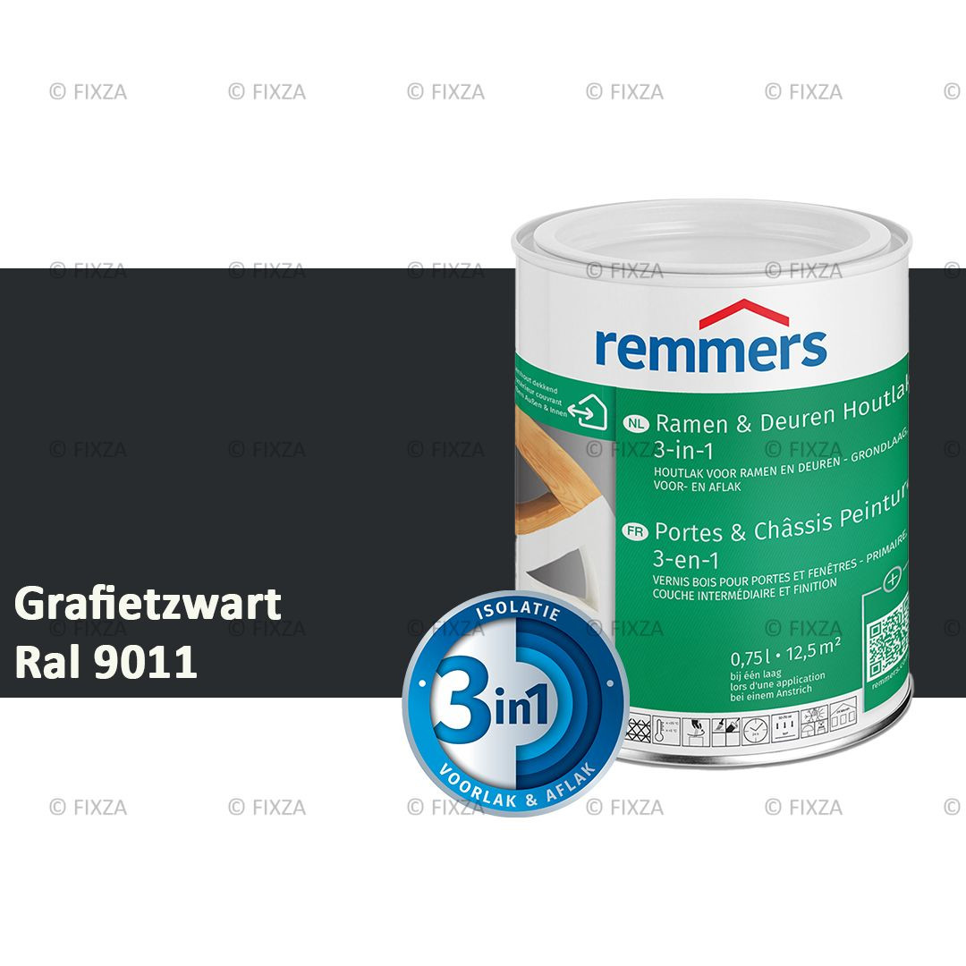 Remmers Ramen & Deuren Houtlak 3in1 RAL 9011 Grafietzwart – De perfecte zwarte lakverf voor het schilderen van hout buiten, zoals ramen en deuren enz.