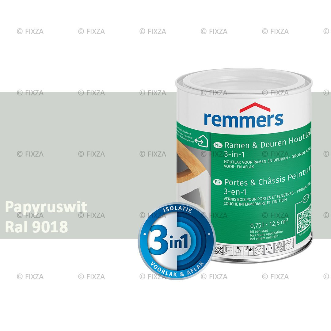 Bent u op zoek naar een hoogwaardige kozijnen verf buiten die niet alleen een prachtige uitstraling biedt, maar ook optimale bescherming en duurzaamheid garandeert? Bestel dan Remmers Ramen & Deuren Houtlak 3in1 in RAL 9018 Papyruswit eenvoudig en snel bij FIXZA. Profiteer van gratis verzending vanaf € 20,- en een snelle levering. Bestellingen die voor 17:00 uur geplaatst worden, worden nog dezelfde dag op kleur gemengd en verzonden. FIXZA levert uit voorraad in Nederland, België en Luxemburg.