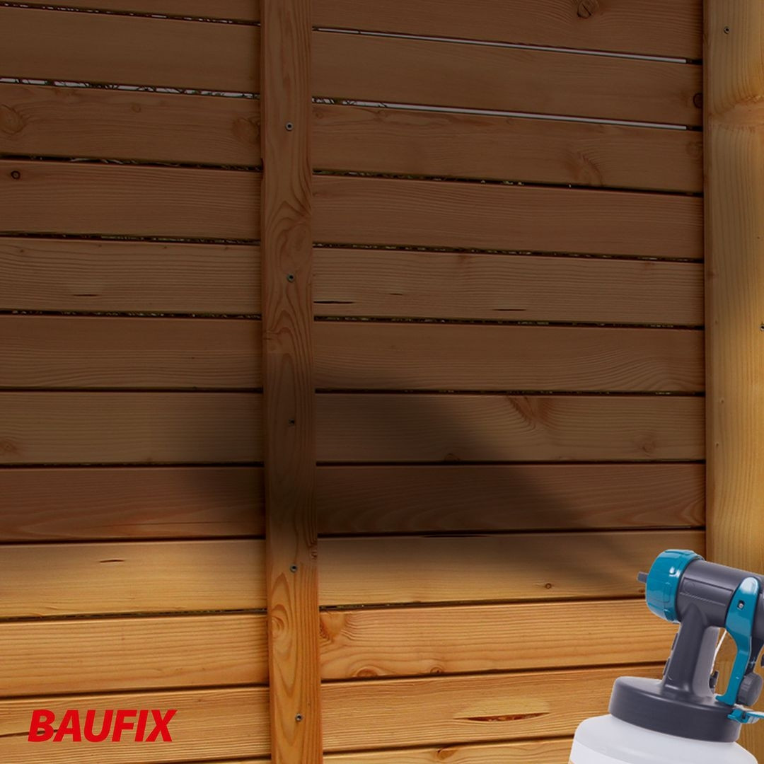 BAUFIX Multi- spray Houtbeits voor elektrische spuitpistolen, bekerpistolen maar ook met een kwast aan te brengen. BAUFIX Mult- ispray Houtbeits is een ademende houtbeits die geschikt is voor alle houtsoorten en druipvast is. De multispray houtbeits kenmerkt zich door een hoge UV- en weerbescherming en is daarom geschikt voor alle gevel- en profielhout, voor houten huizen, dakbeschot, tuinhuizen, carports, pergola's, vakwerk, schuttingen, paarde bak omheiningen en voor de renovatie van bestaande lazuurlagen en tropische houtsoorten die een intensieve beschermingsbehandeling vereisen.