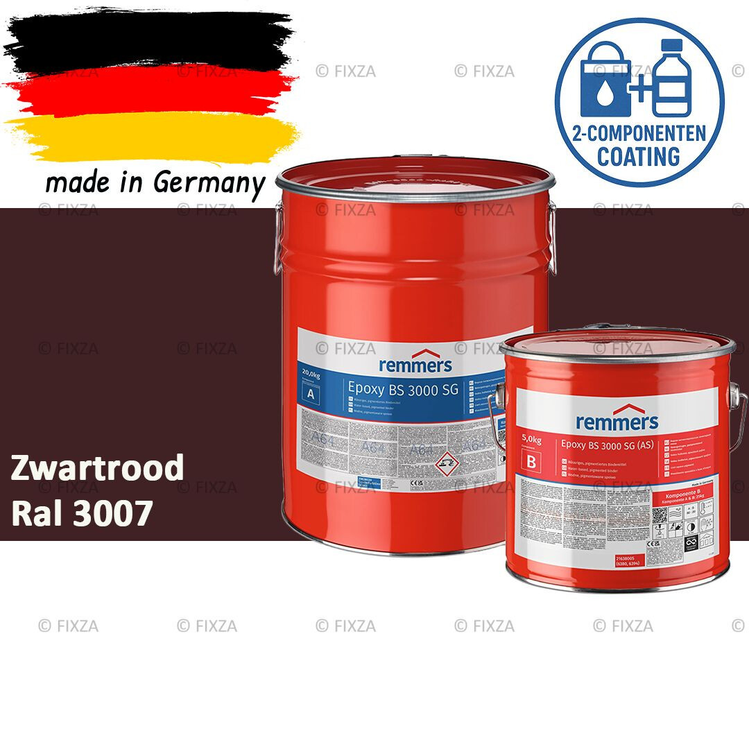 Remmers Epoxy BS 3000 SG – Professionele 2-Componenten Epoxy Vloercoating – RAL 3007 Zwartrood