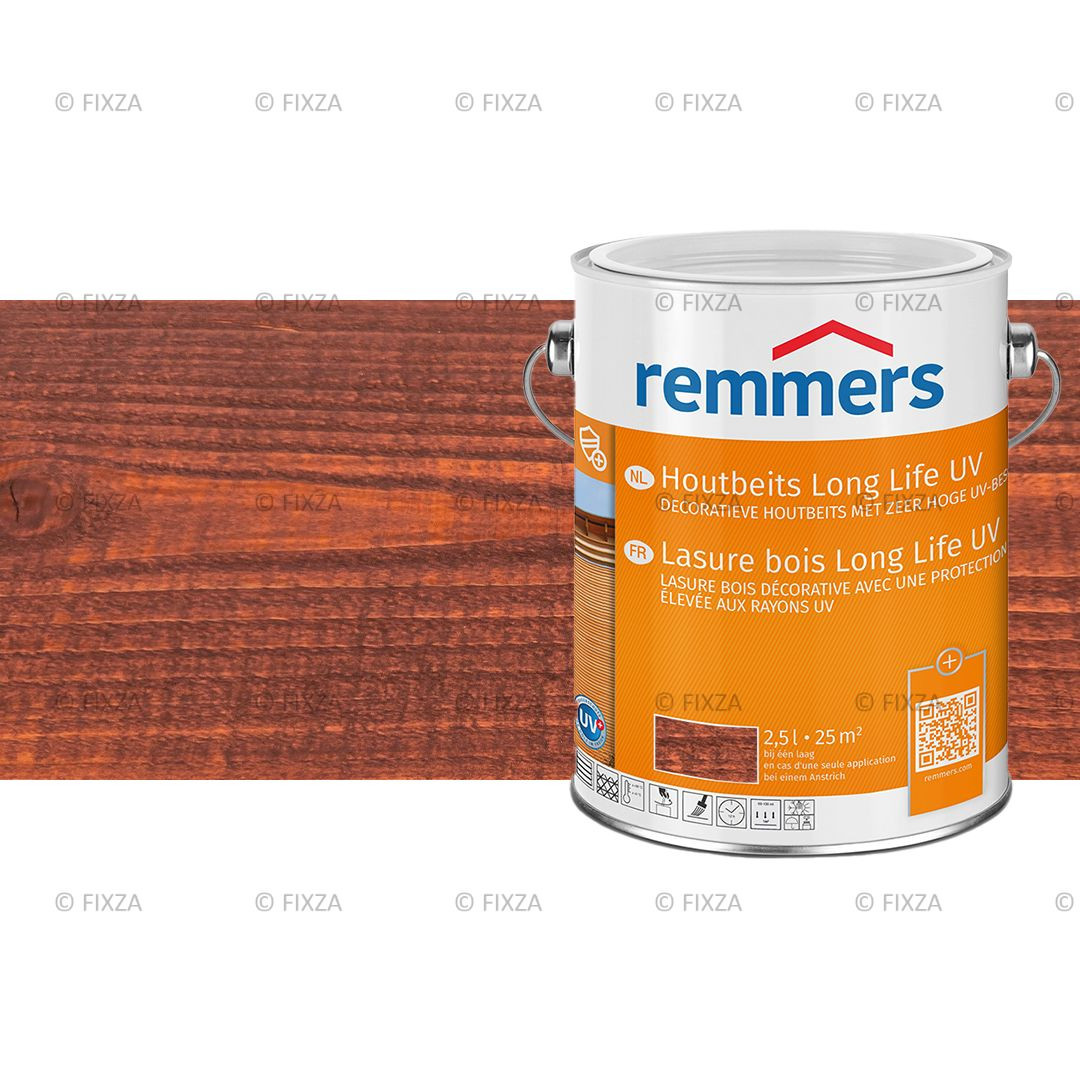 - Verbruik: 1e laag ca. 100 ml/m², 2e laag ca. 60 ml/m². Voor het afwerken van Remmers HK Lazuur of Remmers Houtbeschermingscrème 3in1 met Remmers Long Life Houtbeits UV kleurloze UV+ zijn altijd 3 lagen vereist.