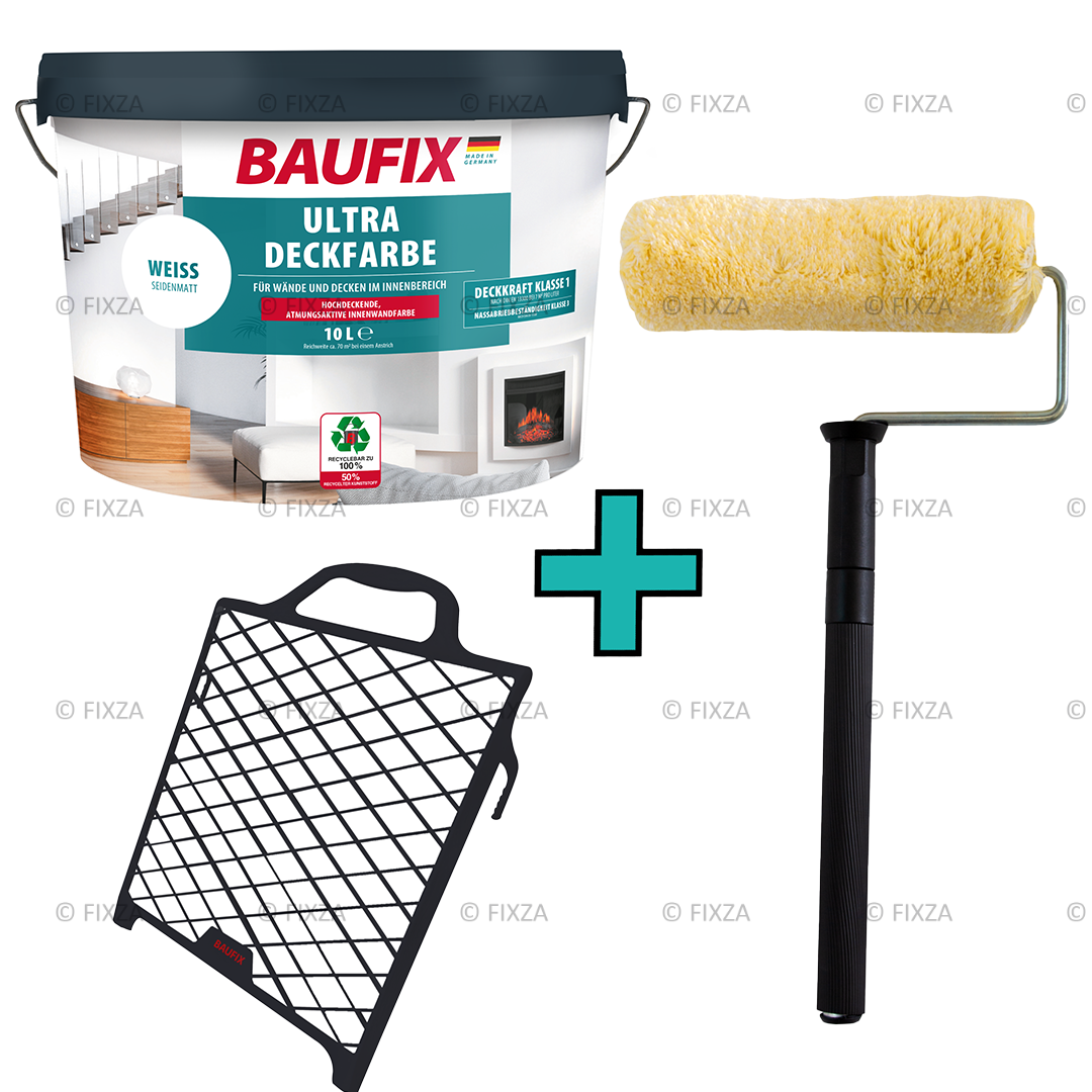 BAUFIX Ultra Dekkende muurverf zijdemat is een zeer dekkende witte muurverf voor binnen. Dankzij de hoge dekklasse 1 volgens DIN EN 13300 en de hoge witheidsgraad kan een perfect resultaat meestal worden bereikt met slechts één laag. Met klasse 3 natte slijtvastheid is BAUFIX Ultra Dekkende muurverf een afwasbare muurverf. De dispersieverf kan binnenshuis op muren en plafonds worden aangebracht en is onder andere geschikt voor minerale ondergronden, voor metselwerk, pleisterwerk, beton en bouwplaten, maar ook voor structuurbehang van vinylschuim of papier en oude dispersiebasis -gebaseerde coatings.